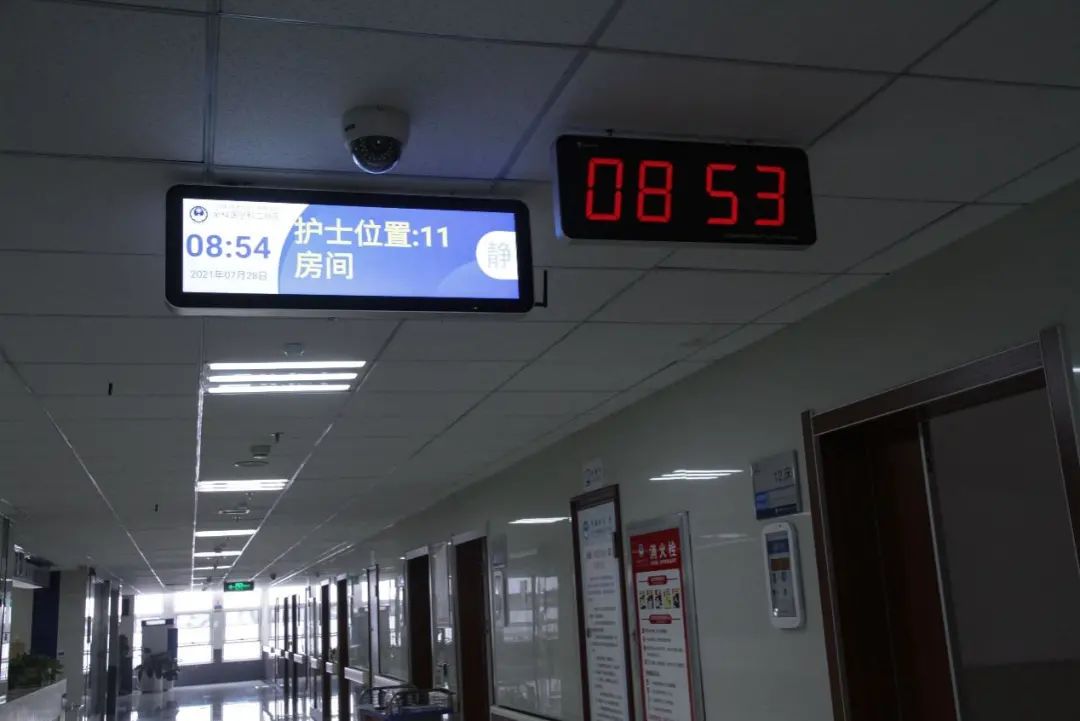 如果是在比較繁忙的集中查房和交接班時間,患者還可以通過走廊上的顯示屏,實(shí)時查看醫(yī)護(hù)位置。