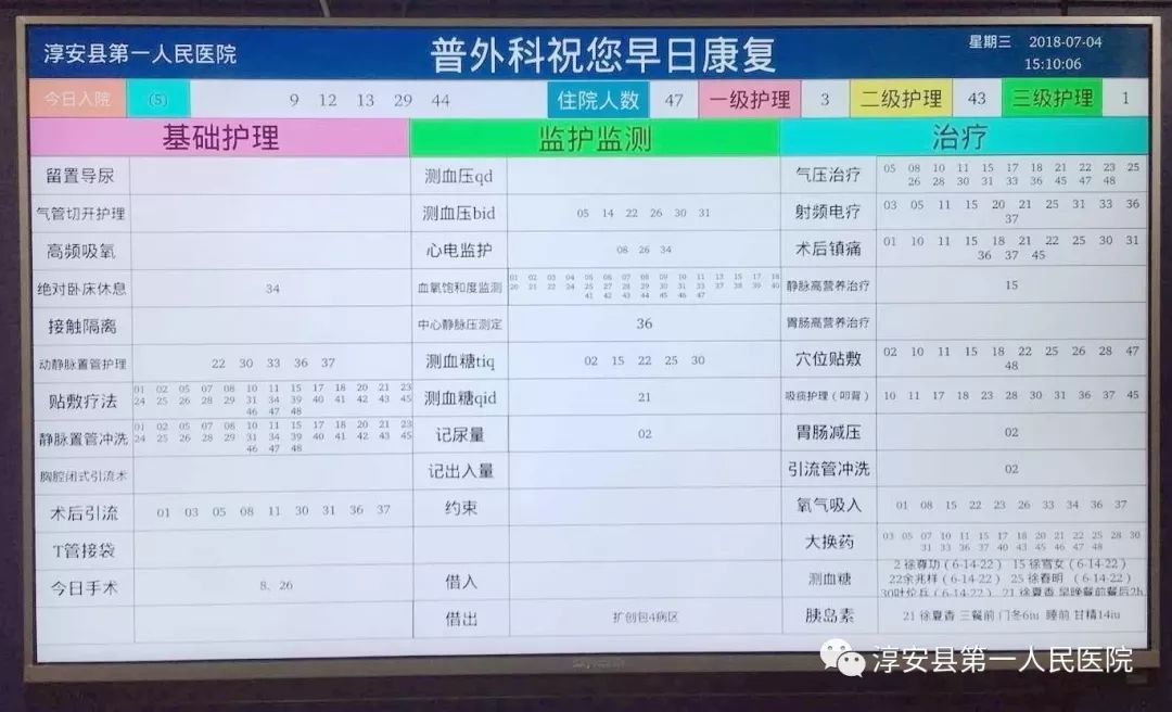 病房護理白板由原來的黑板手寫改為現(xiàn)在的信息化電子屏幕顯示,更直觀更便捷。