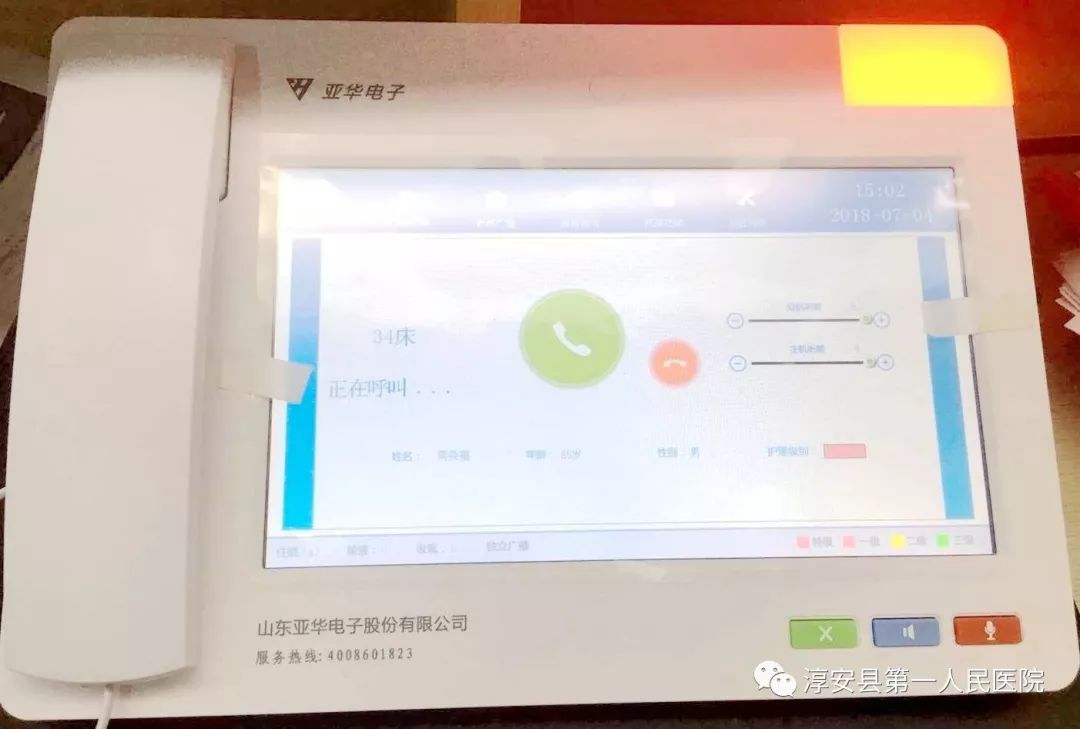 床頭分機,待機界面可顯示患者的住院信息、護理信息和注意事項等,菜單界面可查詢上萬字的入院須知、醫(yī)囑信息、藥費詳單和醫(yī)生簡介等內(nèi)容,采用4種顏色護理標(biāo)識燈警示護理級別、過敏、飲食等,支持增援呼叫,呼叫等待提醒。