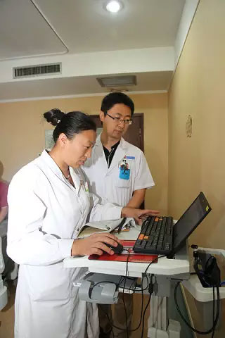 7月11日上午10點(diǎn),即墨市人民醫(yī)院腫瘤一科,科主任夏環(huán)玲帶著幾個(gè)醫(yī)生和實(shí)習(xí)生正在大查房。夏環(huán)玲仔細(xì)檢查完病人,講解一下病情,決定讓病人做CT檢查。主治醫(yī)師崔林林熟練地操作著移動(dòng)查房車(chē),幾分鐘就完成了電腦操作。幾秒鐘之后,護(hù)士站和CT室的電腦終端上都出現(xiàn)了這條醫(yī)囑。家屬拿著預(yù)約單來(lái)到CT室,立即完成了預(yù)約。比起以前,效率提高了好幾倍。